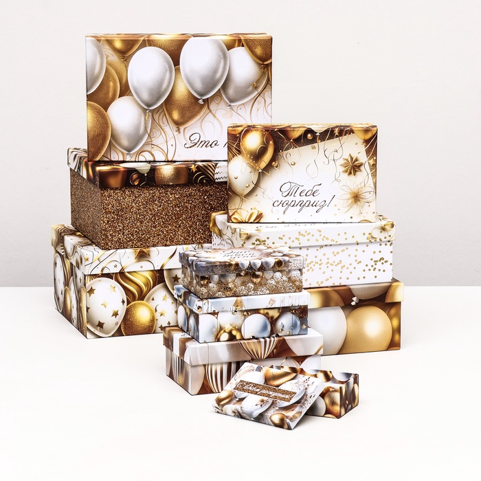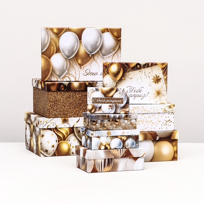 Набор подарочных коробок 10 в 1 «С днём рождения!», 32.5×20×12.5 - 12×7×4 (± 1) см — Характеристики