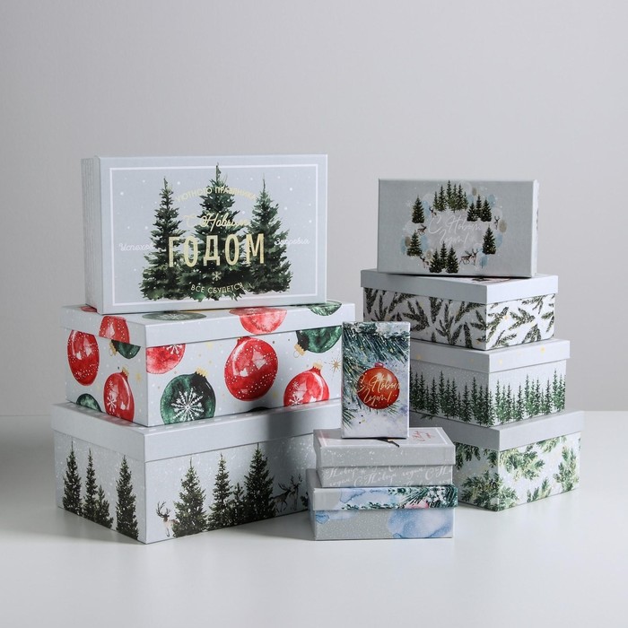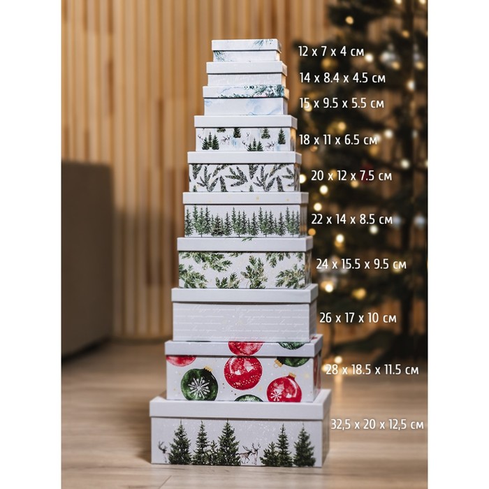 Набор подарочных коробок 10 в 1 «С новым годом», 12×7×4 - 32.5×20×12.5 см — Характеристики