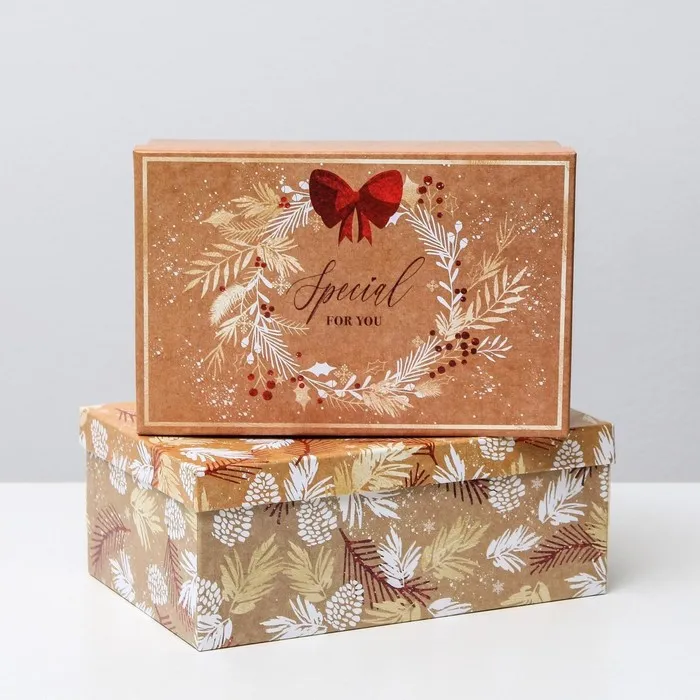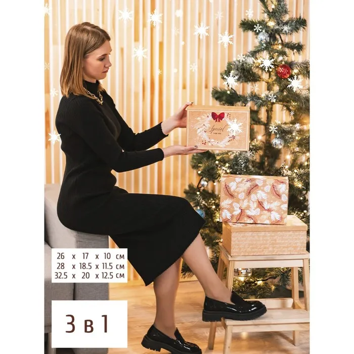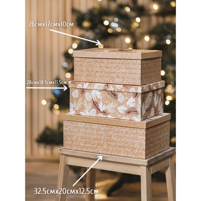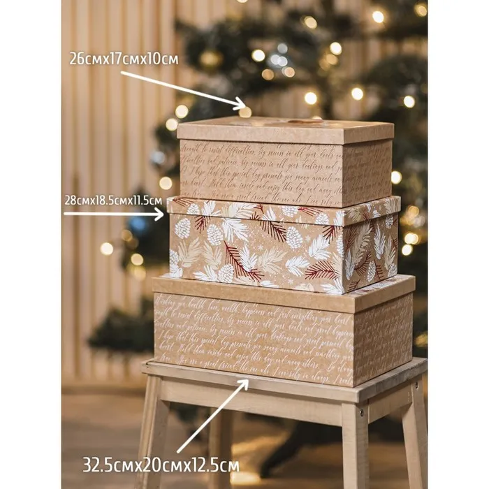 Набор подарочных коробок 3 в 1 «Крафтовый», 32,5 х 20 х 12,5 - 26 х 17 х 10 см, Новый год — Характеристики