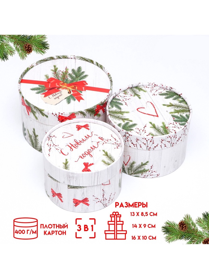 Набор подарочных коробок 3 в 1 «С Новым годом» 16×10, 14×9, 13×8.5 см — Характеристики