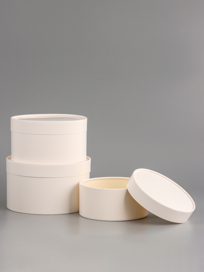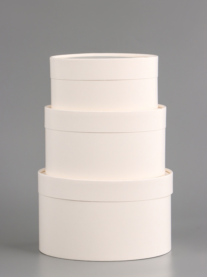 Стильный набор для элегантной упаковки! Набор белых круглых коробок 3 в 1 – это комплект вложенных друг в друга коробок разного диаметра. Их чистый цвет и аккуратная отделка создают образ в скандинавском или минималистичном стиле.