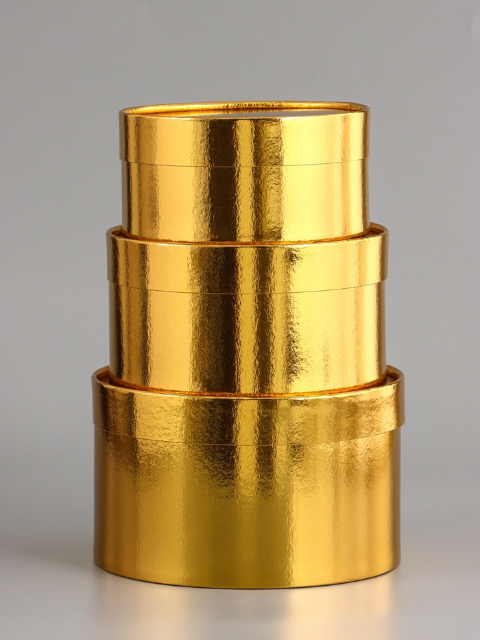 Роскошный набор для особого подарка! Набор золотых круглых коробок 3 в 1 – это комплект вложенных друг в друга коробок разного диаметра. Их насыщенный цвет и благородная отделка создают образ для торжественных и VIP-подарков.