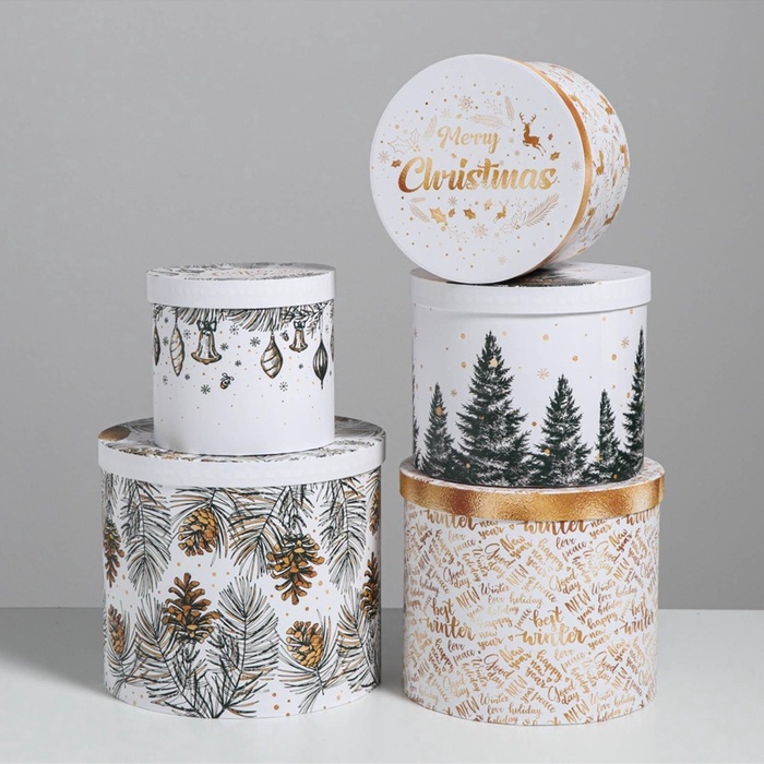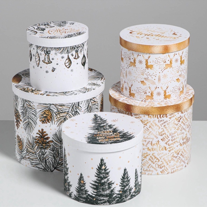 Набор подарочных коробок 5 в 1 «Белое золото», 13×14‒19.5×22 см, Новый год — Характеристики