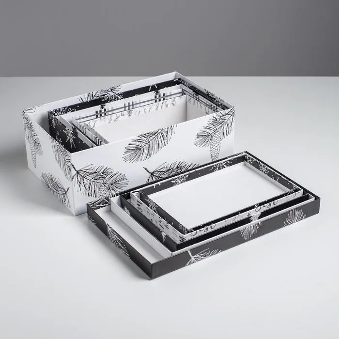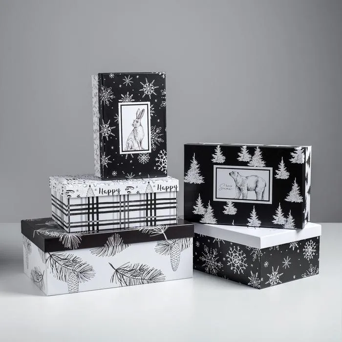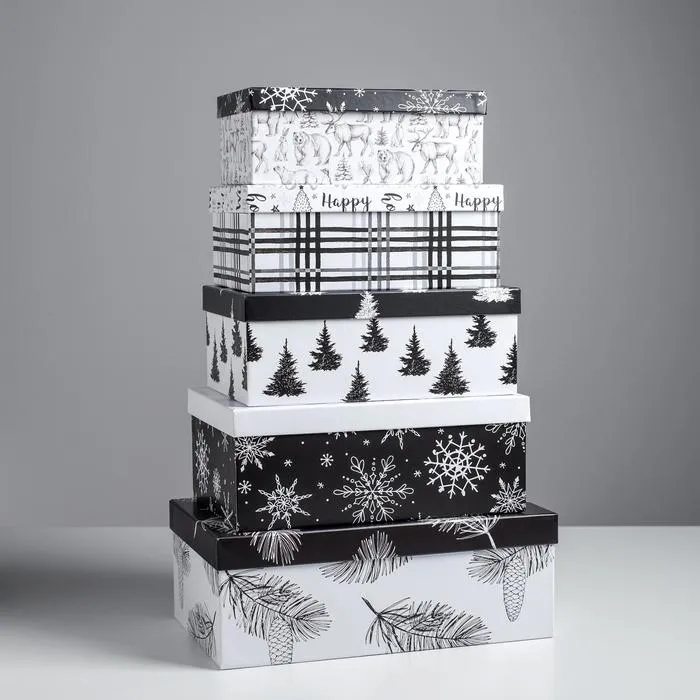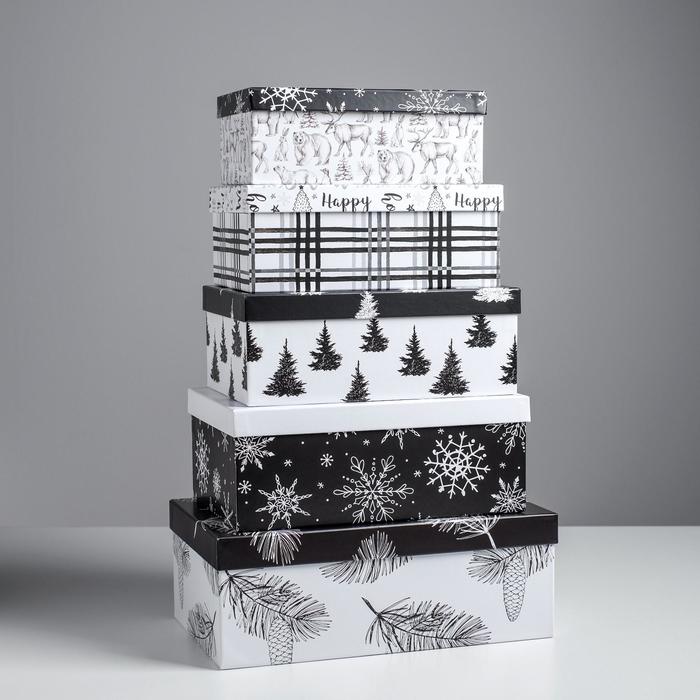Набор подарочных коробок 5 в 1 «Черно-белый», 32,5 х 20 х 12,5 - 22 х 14 х 8,5 см, Новый год — Характеристики