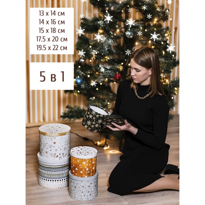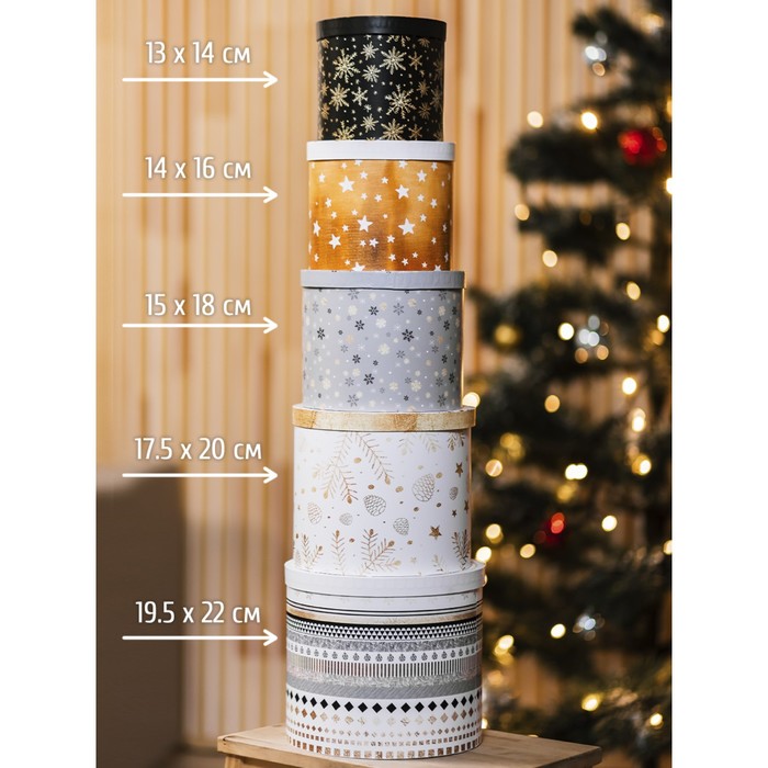 Набор подарочных коробок 5 в 1 «Изморозь», 13 х 14‒19.5 х 22 см, Новый год — Характеристики