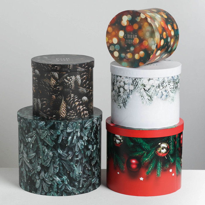 Набор подарочных коробок 5 в 1 «Новогоднее фото», 13 х 14‒19.5 х 22 см, Новый год