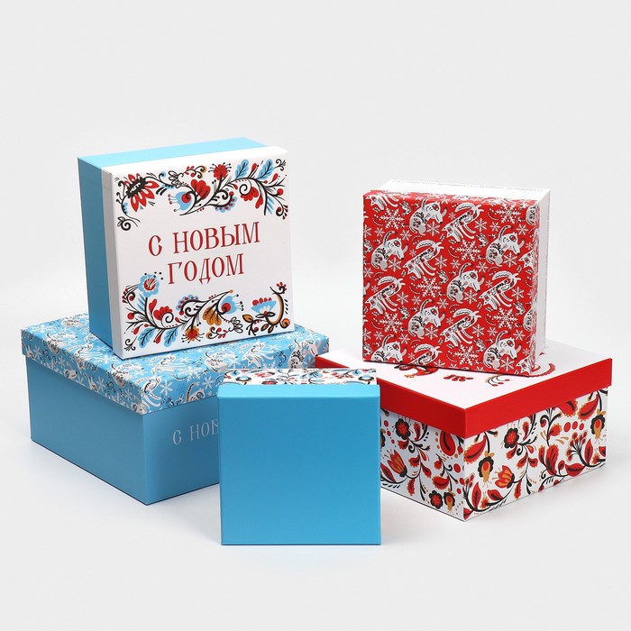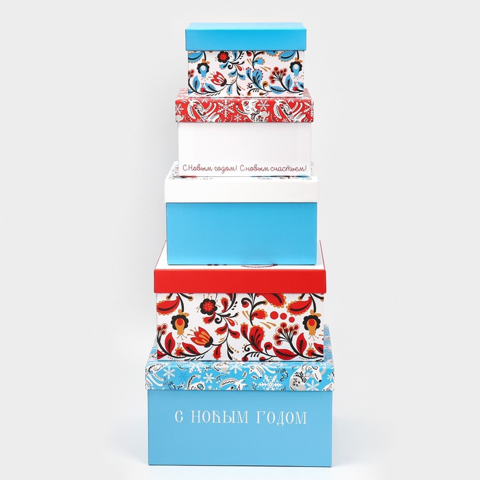 Набор подарочных коробок 5 в 1 «С Новым счастьем», 14 х 14 х 8 - 22 х 22 х 12 см
