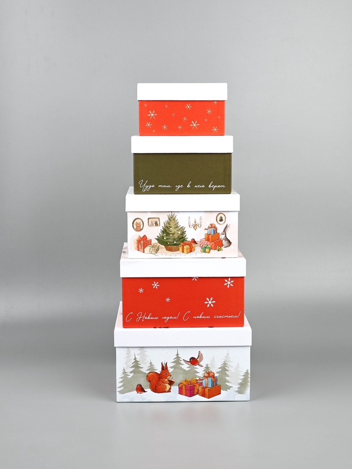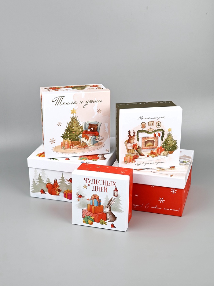 Набор подарочных коробок 5 в 1 «Уютный Новый год», 14 х 14 х 8–22 х 22 х 12 см — Характеристики