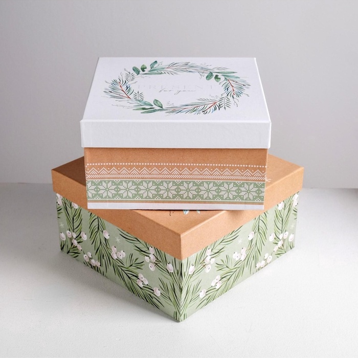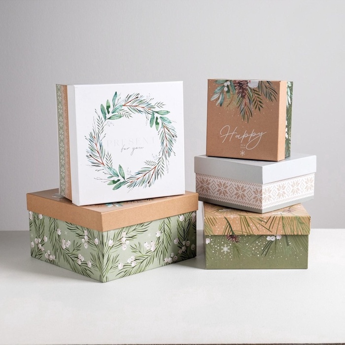 Набор подарочных коробок 5 в 1 «Зимний», 14×14×8 - 22×22×12 см, Новый год — Характеристики