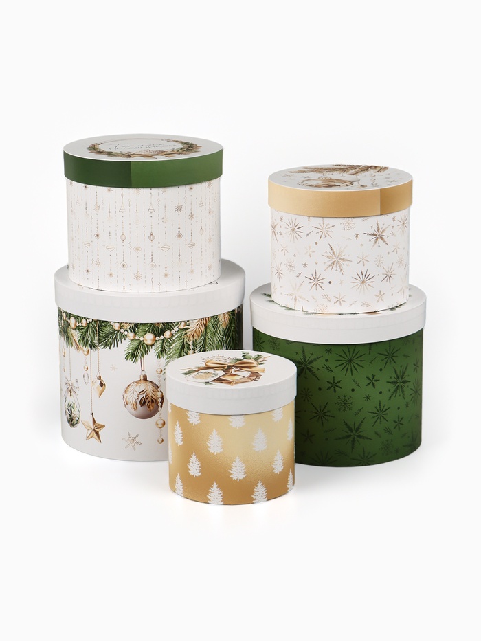 Набор подарочных коробок 5 в 1 «Золотые новогодние шары», 13 х 14‒19.5 х 22 см — Характеристики