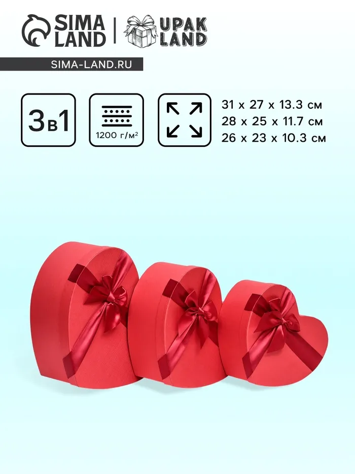 Набор подарочных коробок сердце 3 в 1, 31×28×13.5; 27×24×12; 23×20×10.5 см — Характеристики