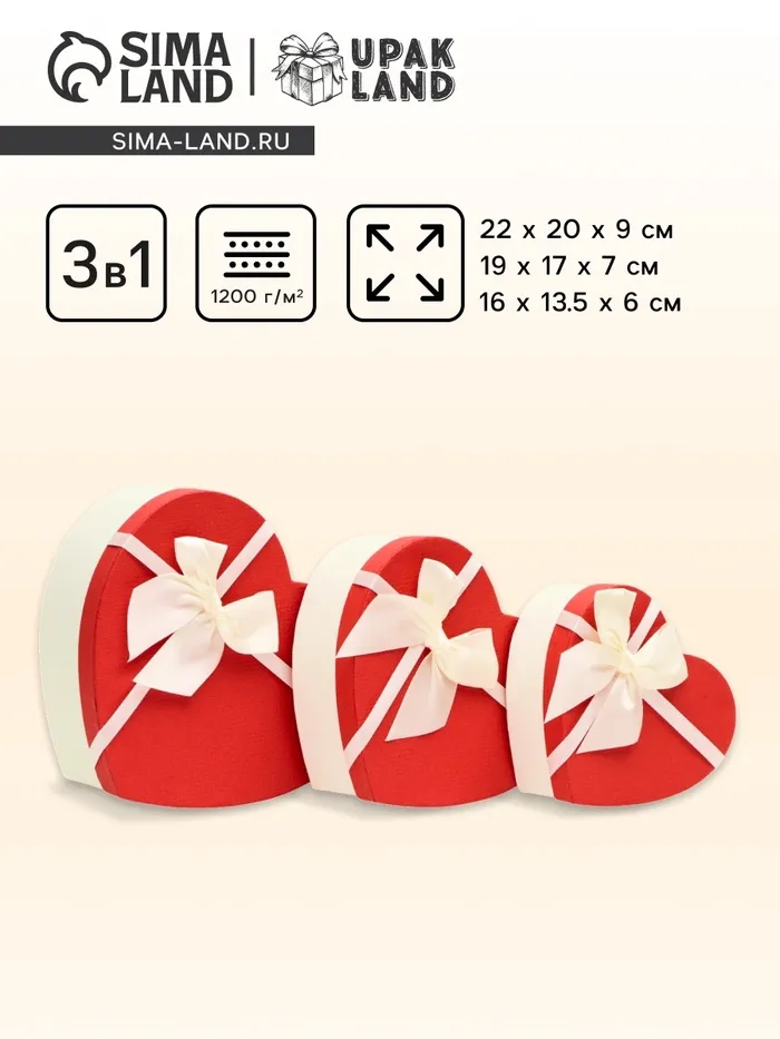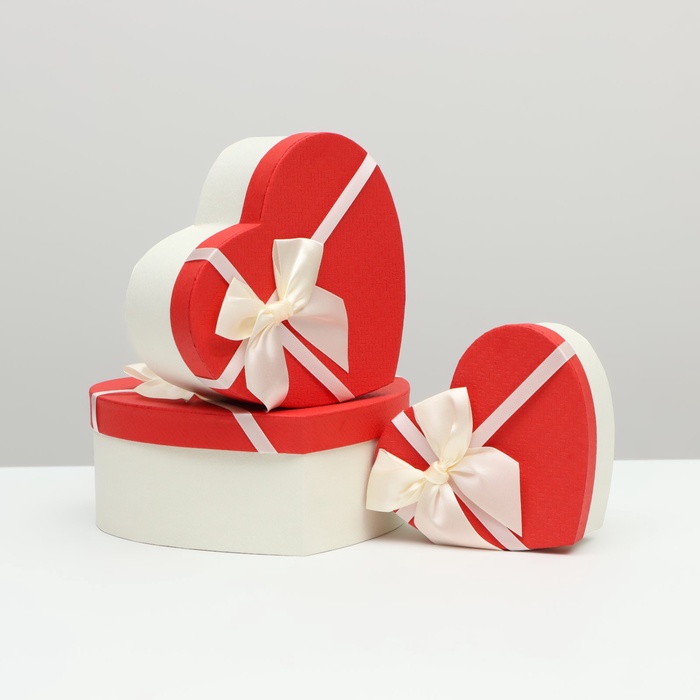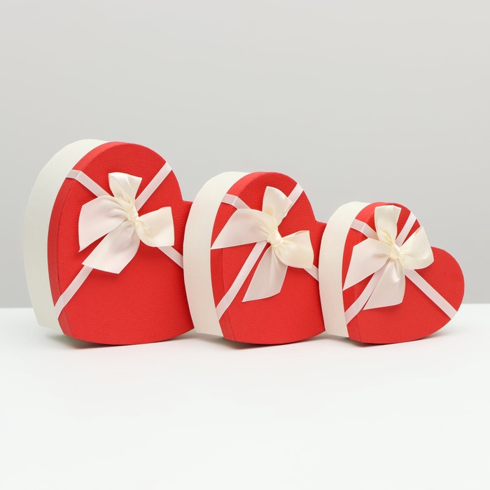 Набор подарочных коробок сердце 3 в 1, «Белый бант», 22×20×9; 19×17×7.5; 16×13.5×6 см — Характеристики