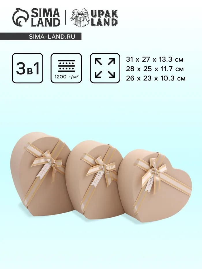 Набор подарочных коробок сердце 3 в 1, бежевый матовый, 31×27×13.3; 28×25×11.7; 26×23×10.3 см — Характеристики