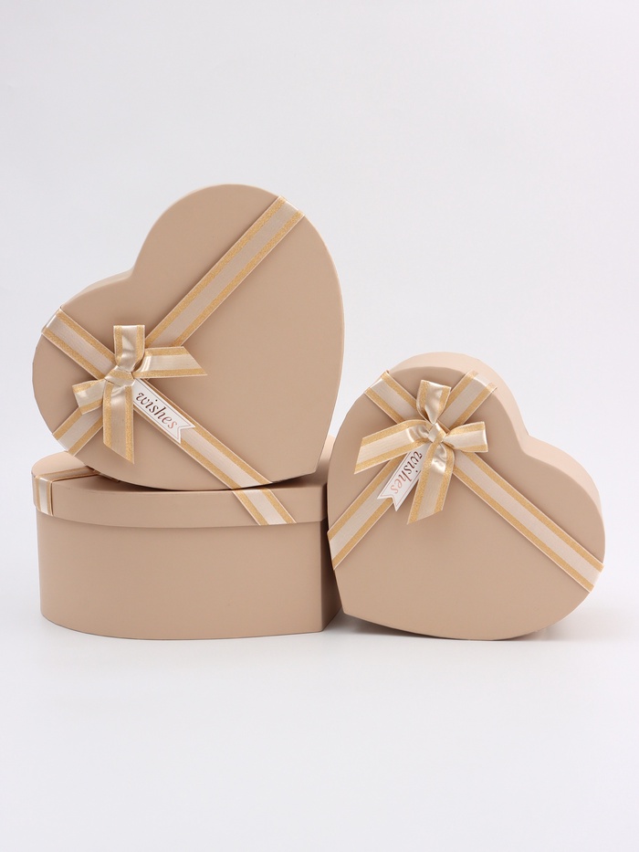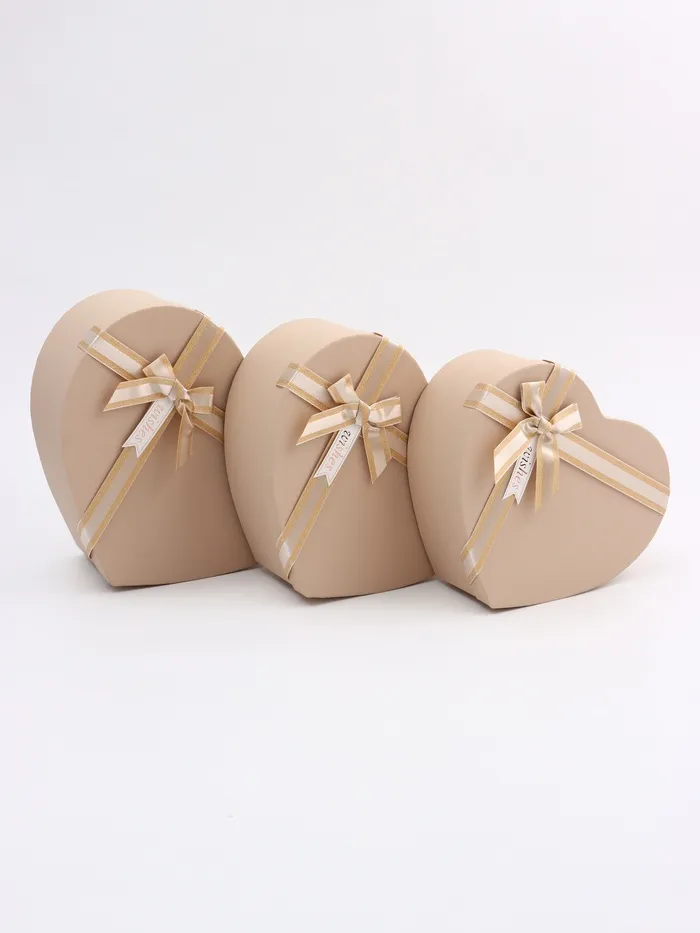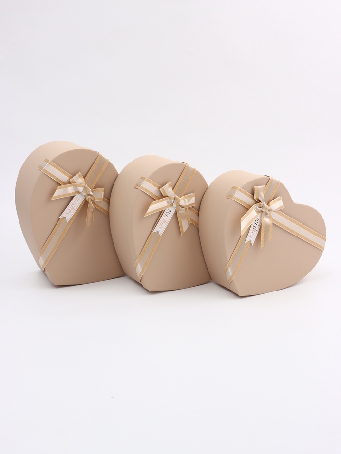 Набор подарочных коробок сердце 3 в 1, бежевый матовый, 31×27×13.3; 28×25×11.7; 26×23×10.3 см