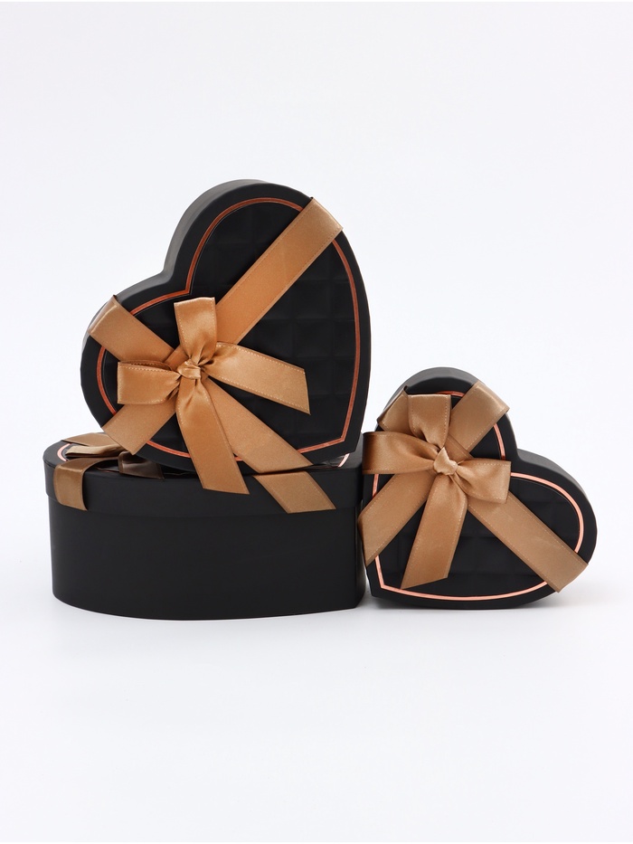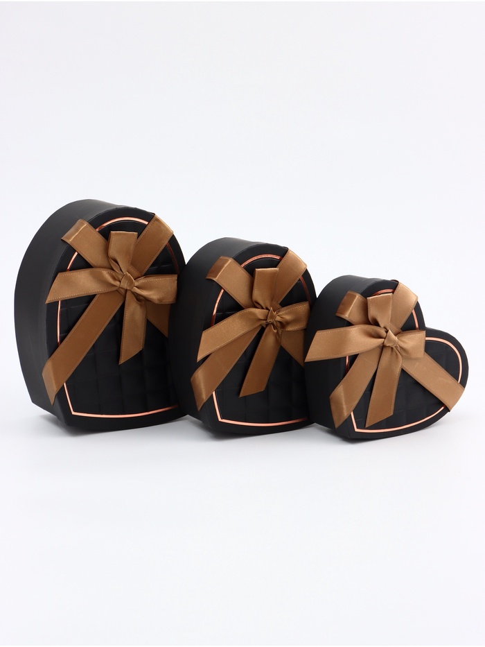Набор подарочных коробок сердце 3 в 1, чёрный, 22×20×9; 18.5×17×7.5; 16×14×6 см