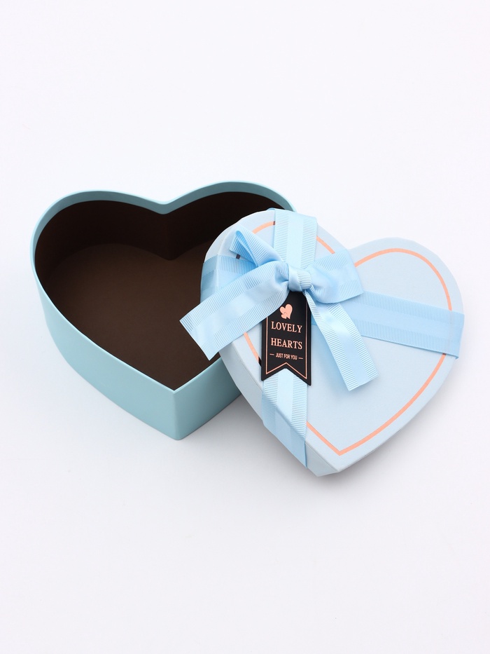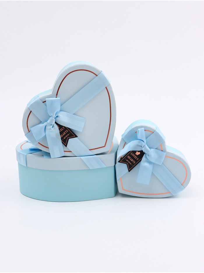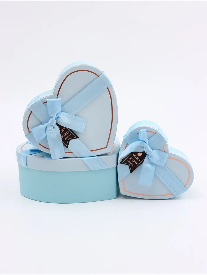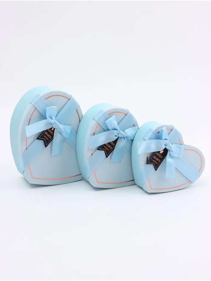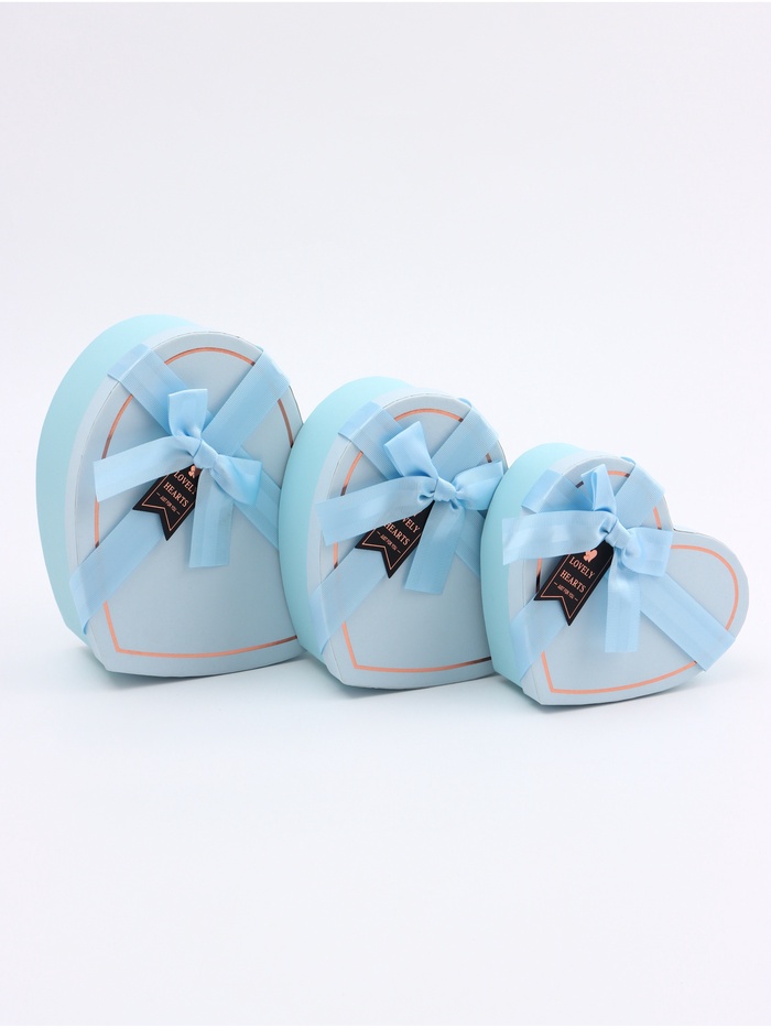 Набор подарочных коробок сердце 3 в 1, голубой с бантом, 22×20×9; 18.5×17×7.5; 16×14×6 см — Характеристики