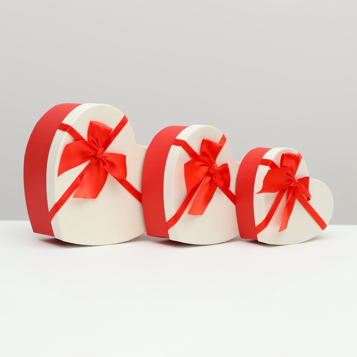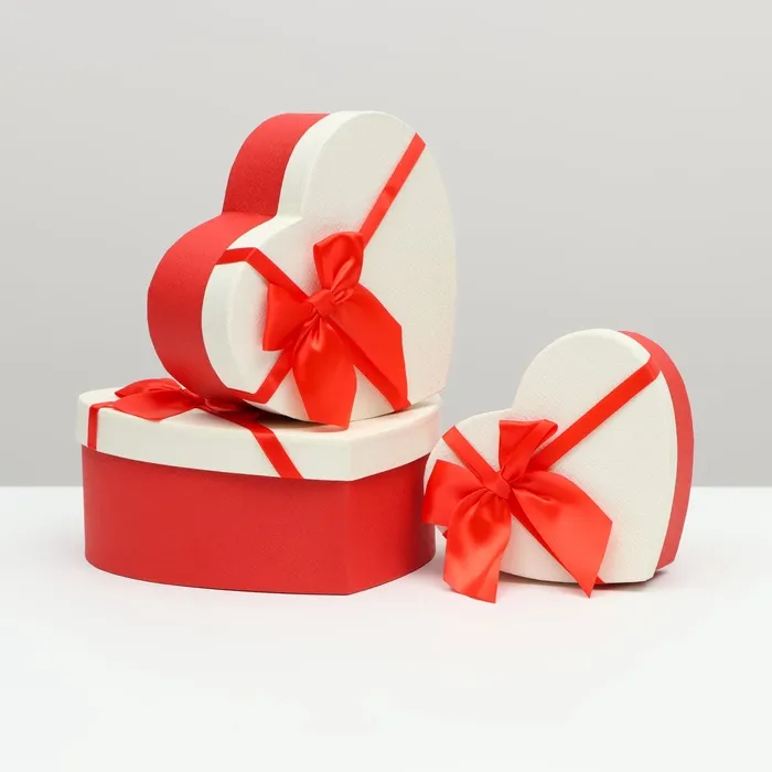 Набор подарочных коробок сердце 3 в 1, «Красный бант», 22×20×9; 19×17×7.5; 16×13.5×6 см — Характеристики