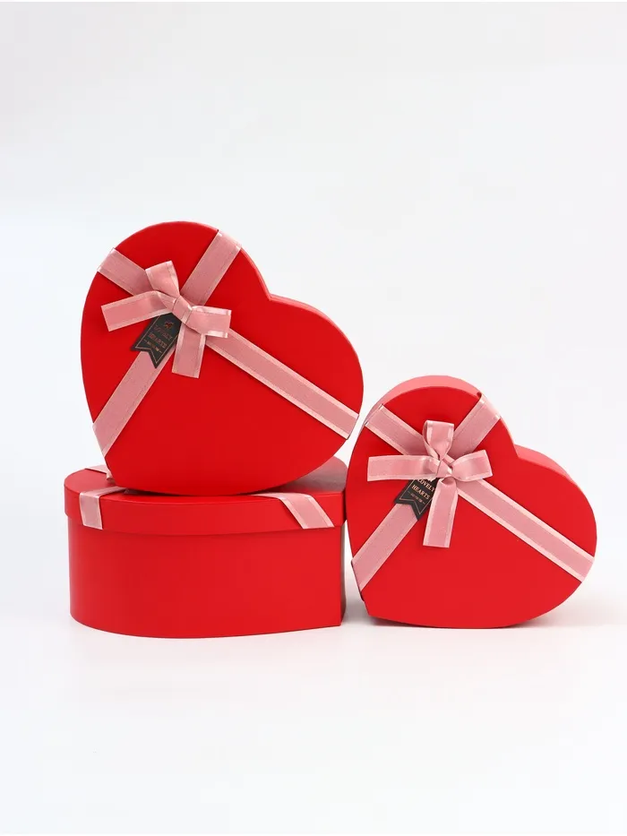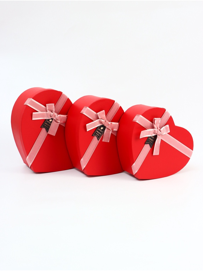 Набор подарочных коробок сердце 3 в 1, красный с розовым бантом, 31×27×13.3; 28×25×11.7; 26×23×10.3 см