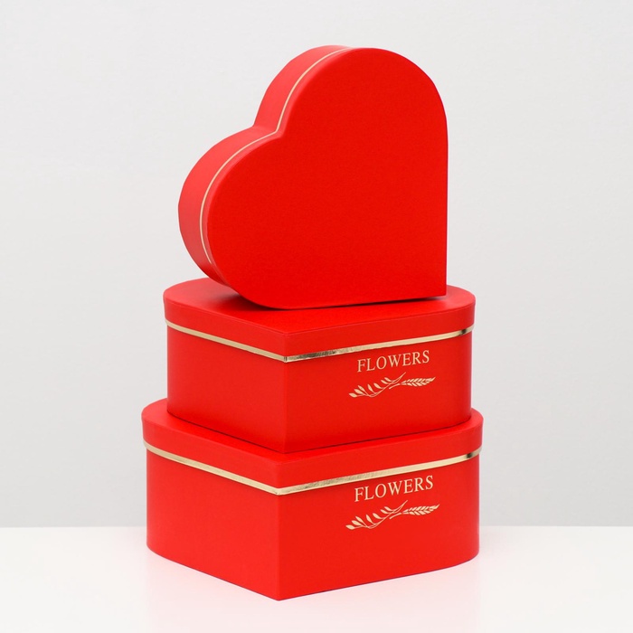 Набор подарочных коробок сердце 3 в 1, красный с тиснением, 28.5×26×11 - 23.5×21×8.5 см — Характеристики