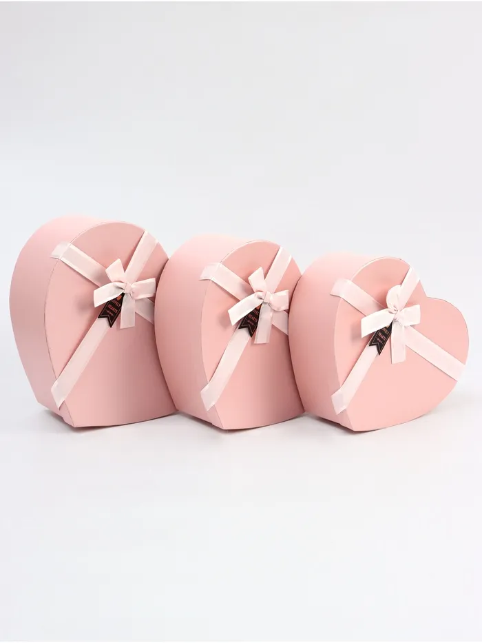 Набор подарочных коробок сердце 3 в 1, нежно-розовый, 31×27×13.3; 28×25×11.7; 26×23×10.3 см