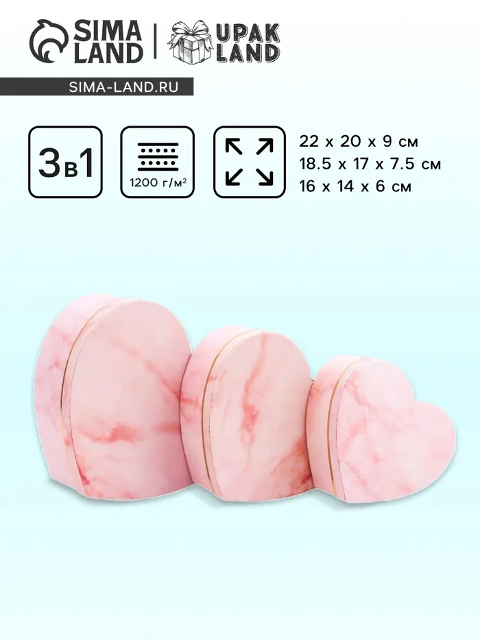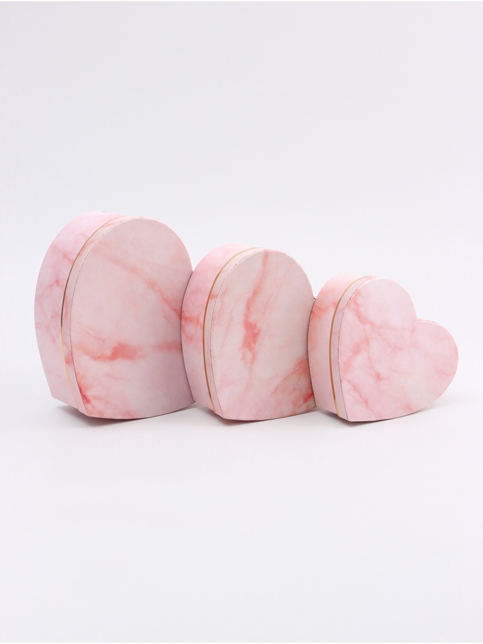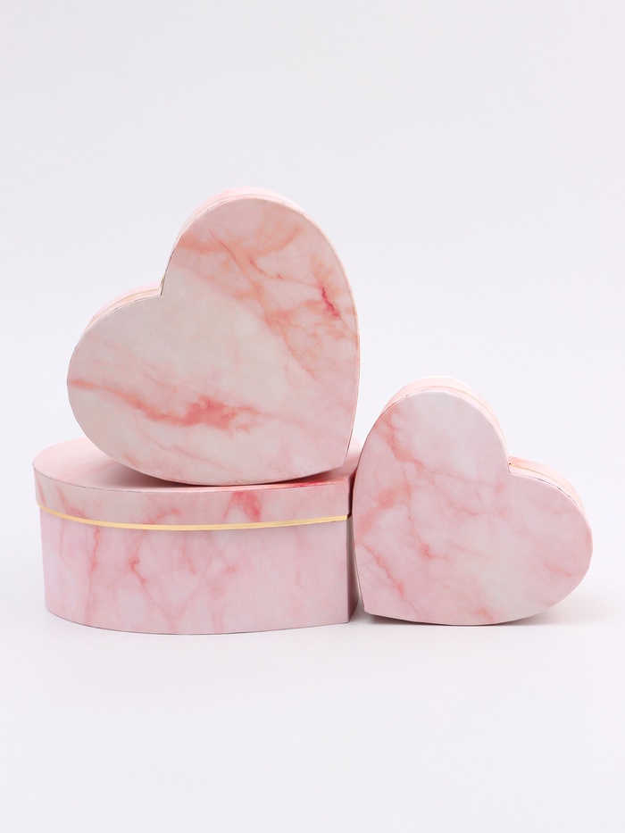 Набор подарочных коробок сердце 3 в 1, розовый мрамор, 22×20×9; 18.5×17×7.5; 16×14×6 см — Характеристики