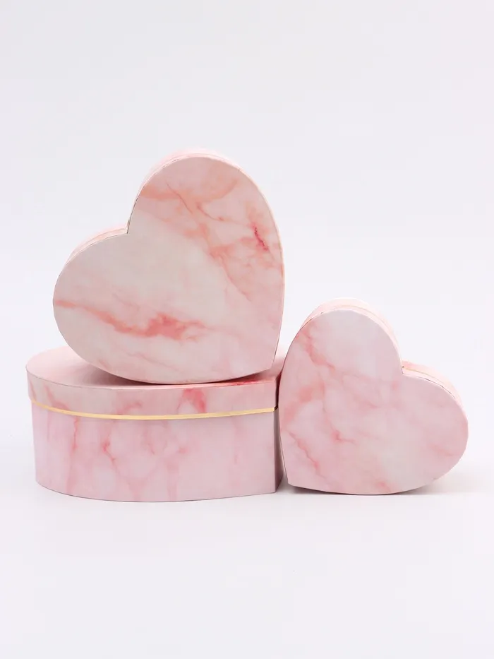 Набор подарочных коробок сердце 3 в 1, розовый мрамор, 22×20×9; 18.5×17×7.5; 16×14×6 см
