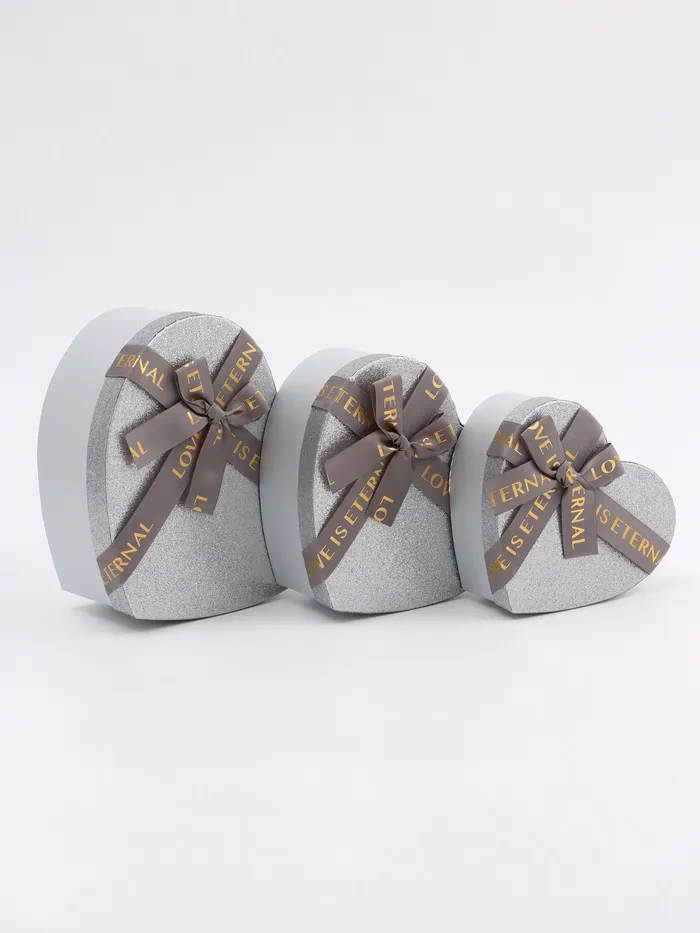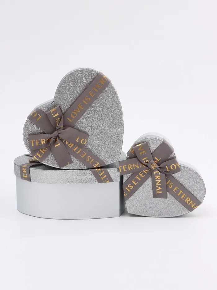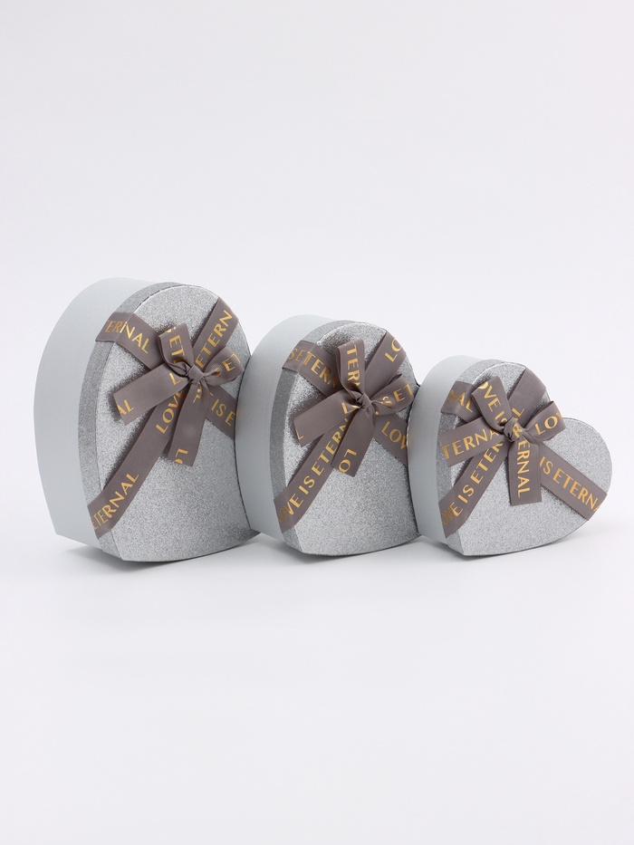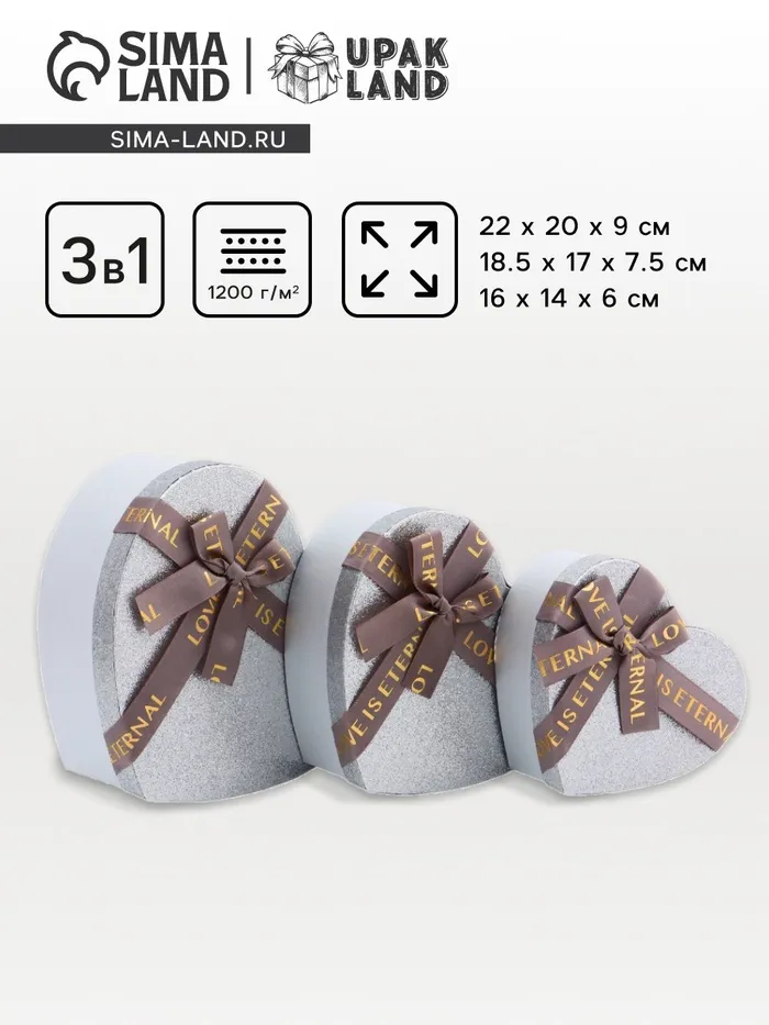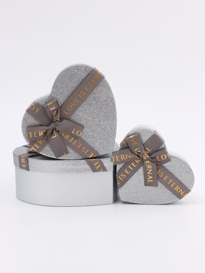 Набор подарочных коробок сердце 3 в 1, серебро с бантом «Любовь вечна», 22×20×9; 18.5×17×7.5; 16×14×6 см — Характеристики