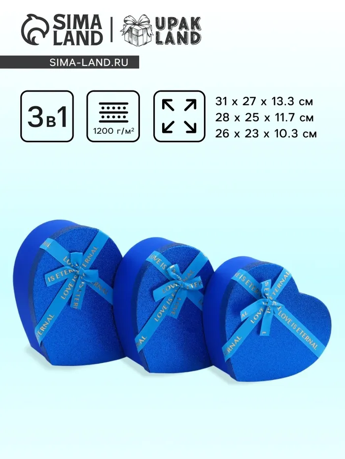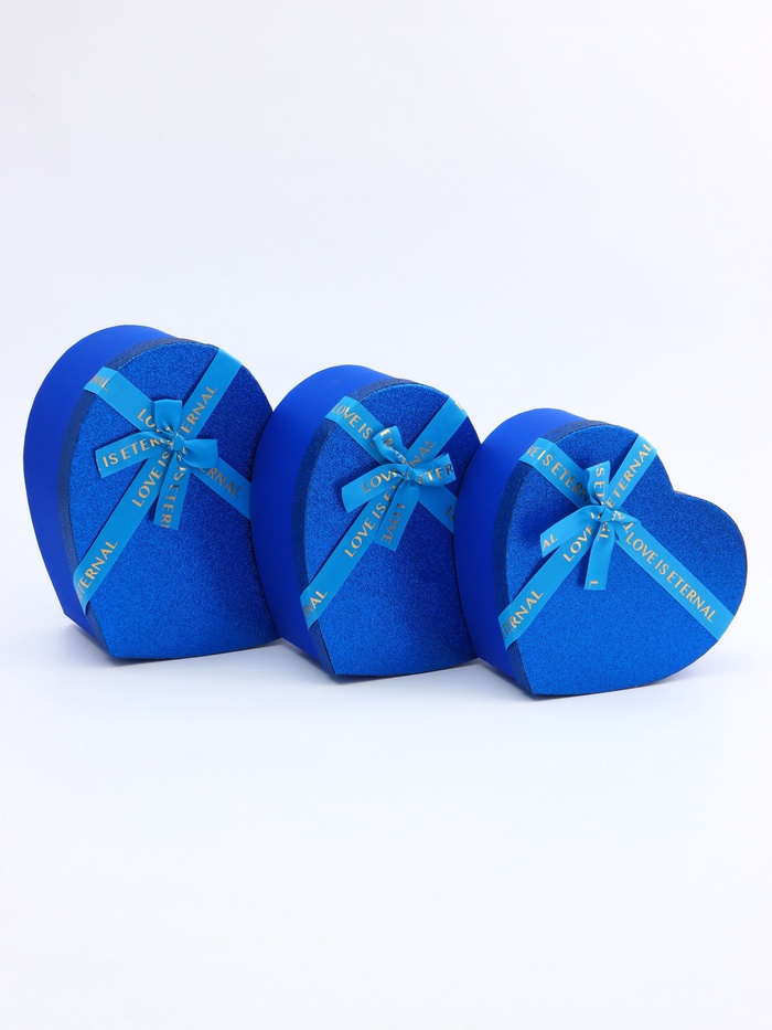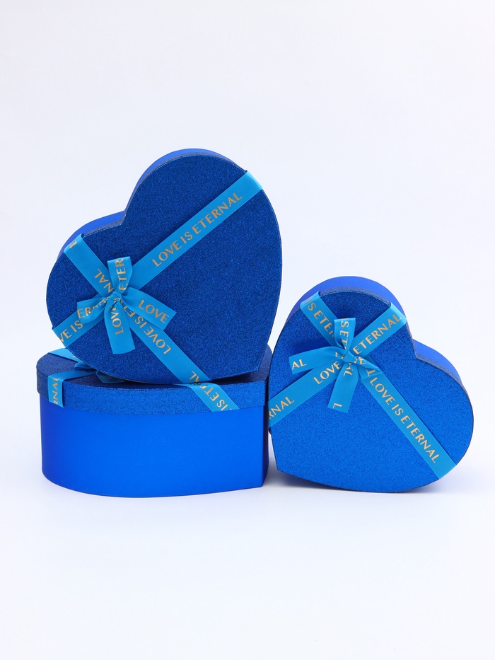 Набор подарочных коробок сердце 3 в 1, сияющий синий с бантом «Любовь вечна», 31×27×13.3; 28×25×11.7; 26×23×10.3 см — Характеристики