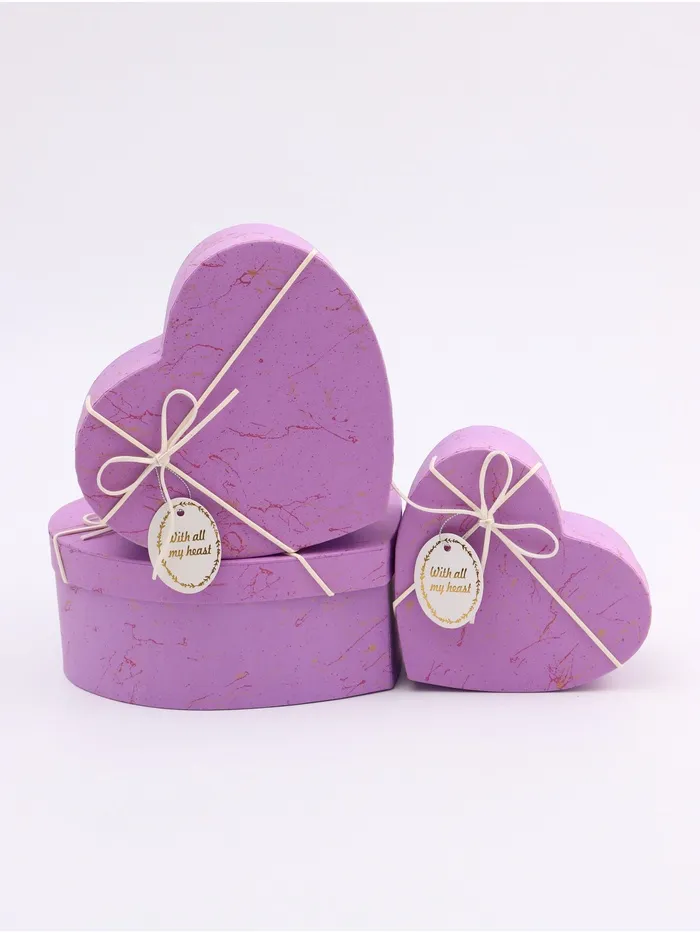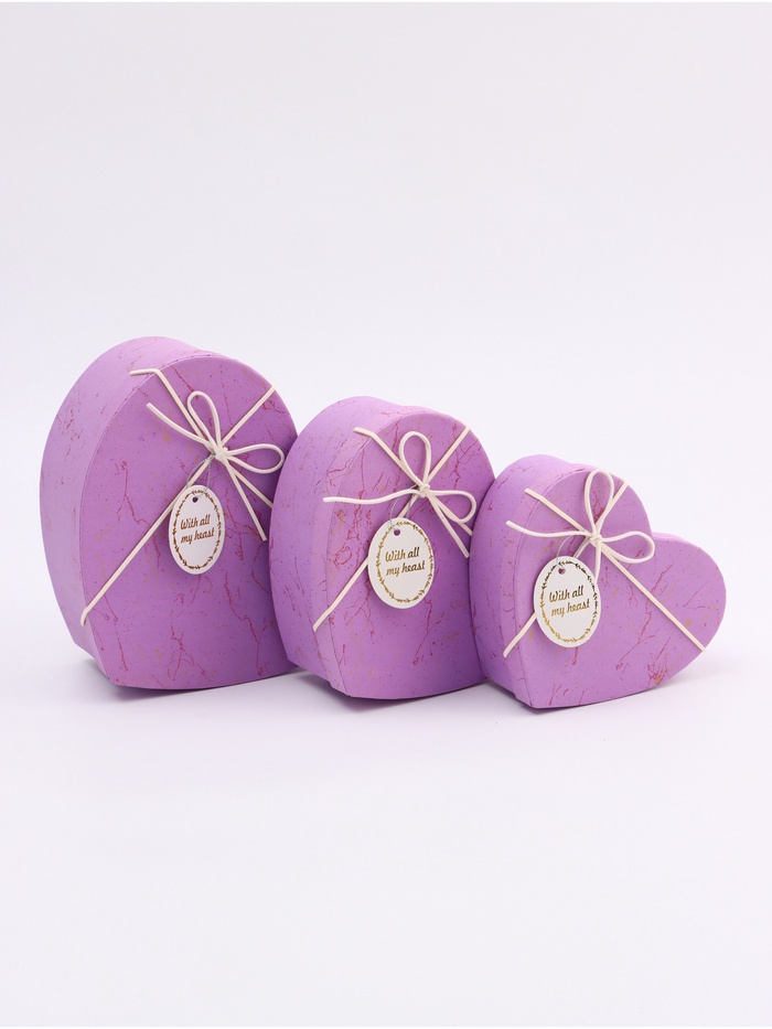 Набор подарочных коробок сердце 3 в 1, сиреневый с акцентом, 22×20×9; 18.5×17×7.5; 16×14×6 см — Характеристики