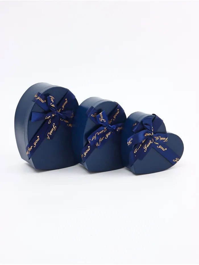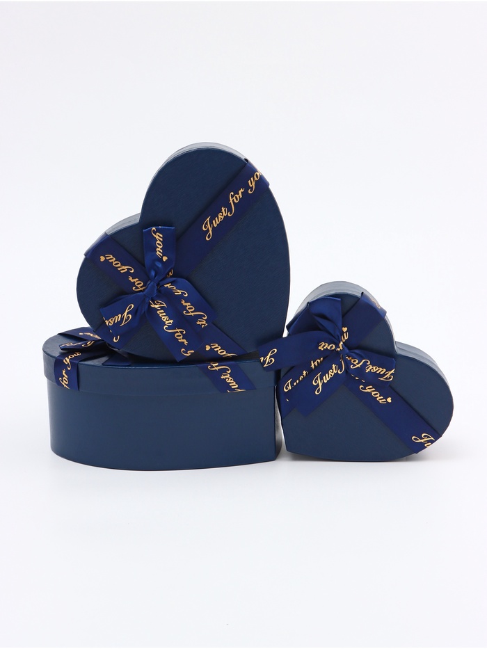 Набор подарочных коробок сердце 3 в 1, тёмно-синий глянцевый с бантом «Для тебя», 22×20×9; 18.5×17×7.5; 16×14×6 см — Характеристики