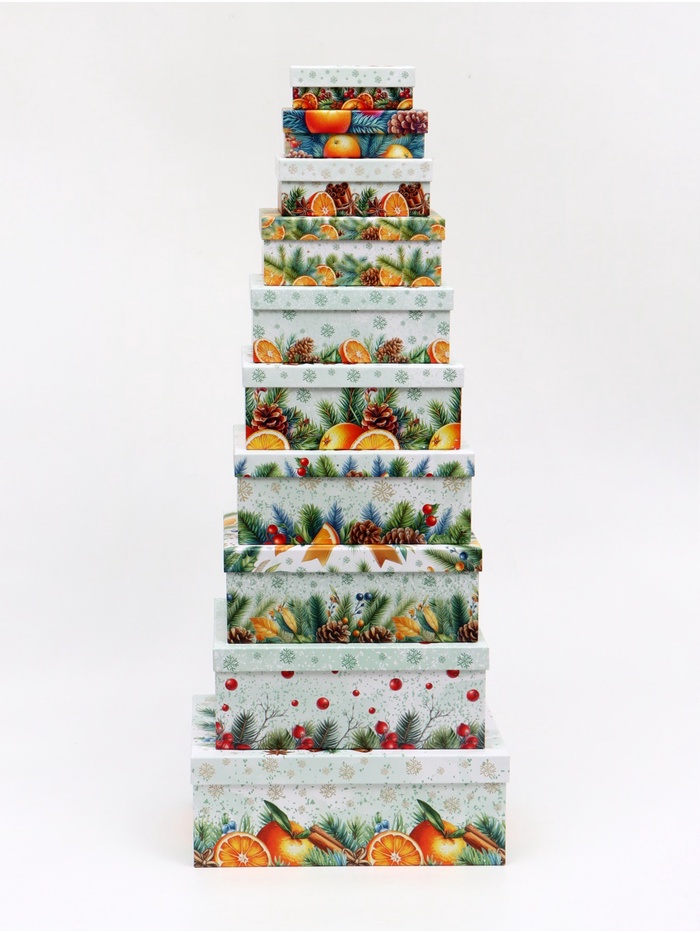 Набор подарочных новогодних коробок 10 в 1 «Мандариновое счастье», 32.5×20×12.5 - 12×7×4 см — Характеристики