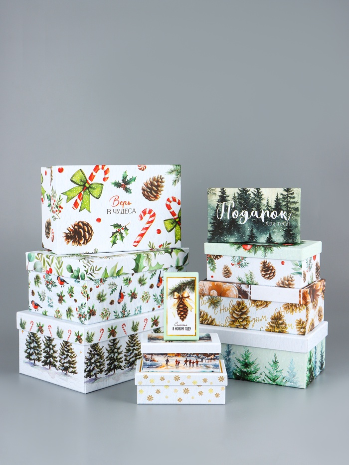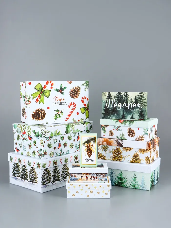 Набор подарочных новогодних коробок 10 в 1 «Новогодние мечты», 30×19×11.5 - 12×6.5×4 см — Характеристики