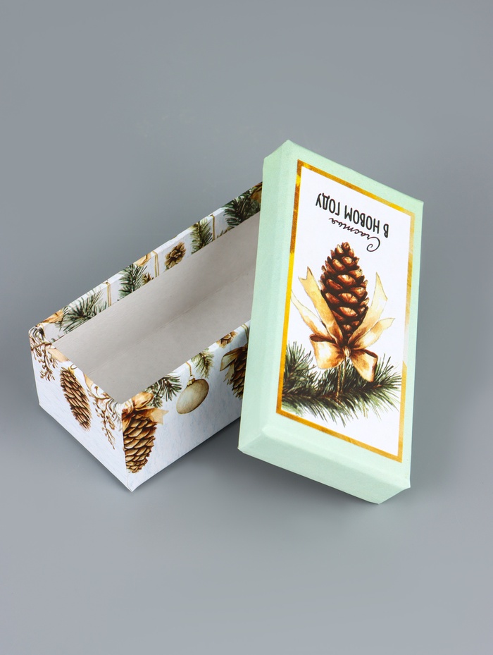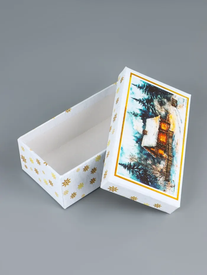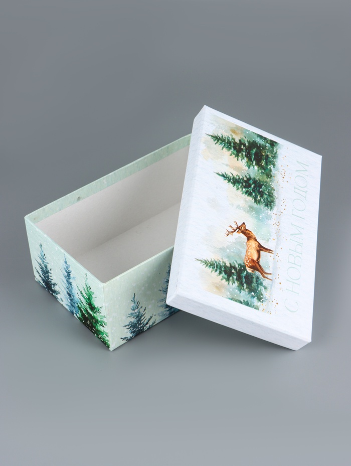 - Прямоугольная форма: Удобно складывать подарки, экономично использовать пространство под елкой. Коробки легко собираются без дополнительных инструментов.