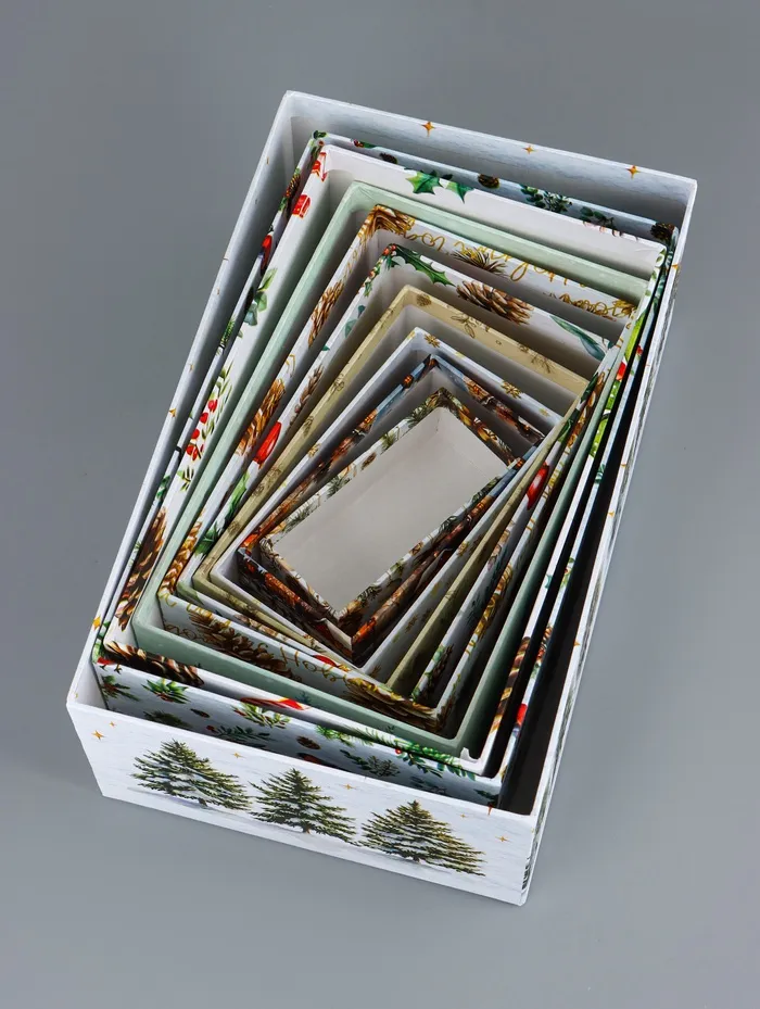 Для семейных праздников: Набор используют для подготовки подарков родным, друзьям или коллегам — одинаковый стиль оформления создает ощущение продуманности. После праздника коробки подходят для хранения елочных украшений или зимних аксессуаров. Просто соберите коробку, положите подарок и добавьте ленту — новогоднее чудо готово.