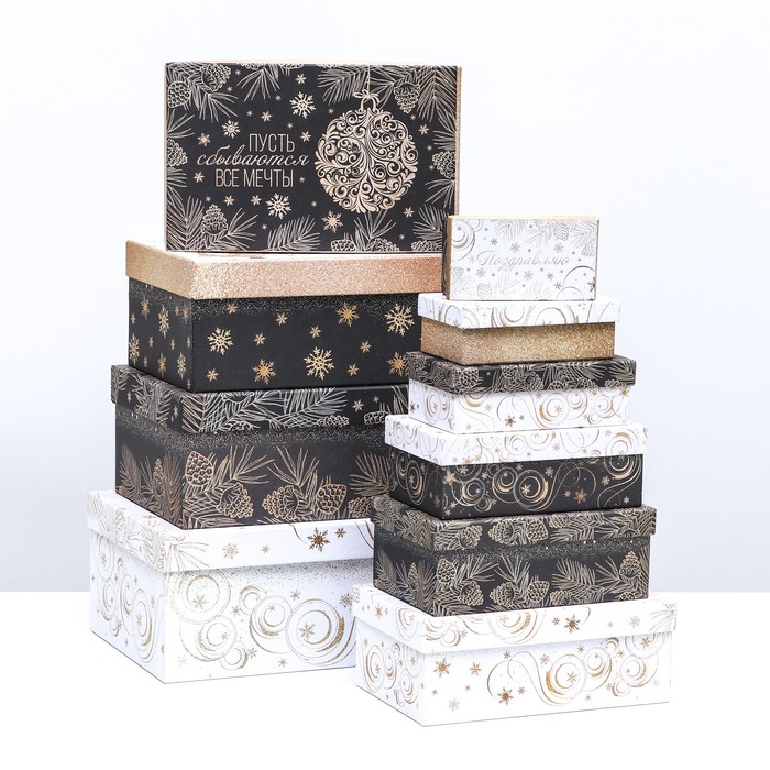 Набор подарочных новогодних коробок 10 в 1 «Счастья в Новом году», 30.5×20×13 - 12×6.5×4 см — Характеристики