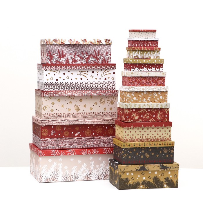Набор подарочных новогодних коробок 15 в 1 «Изысканность», 47.5×35.5×17.5 - 12×7×4 см — Характеристики