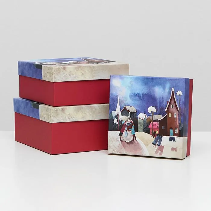 Набор подарочных новогодних коробок 3 в 1 "А у нас во дворе", 19 х 19 х 9,5 - 15,5 х 15,5 х 6,5 см. — Характеристики