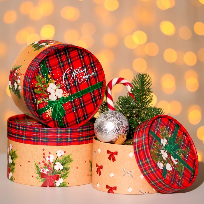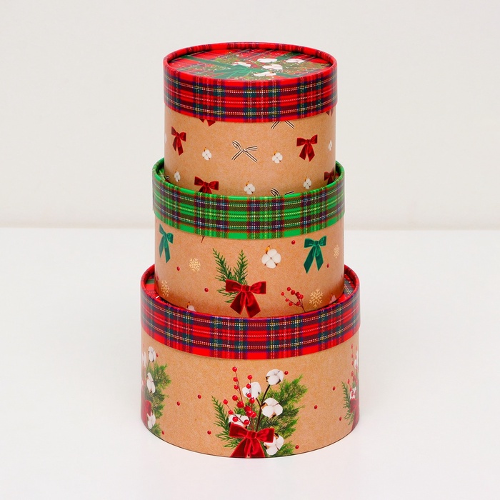 Набор подарочных новогодних коробок 3 в 1 «Клетка», 16×10, 14×9, 13×8.5 см — Характеристики