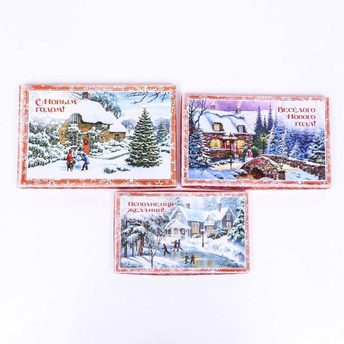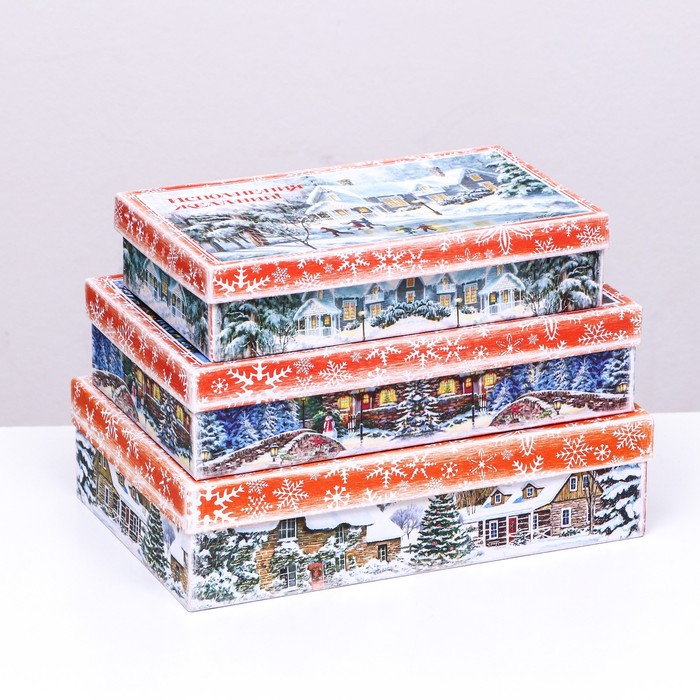 Набор подарочных новогодних коробок 3 в 1 «Рождественская деревня», 29.5×19×8 - 24×14×5 см — Характеристики