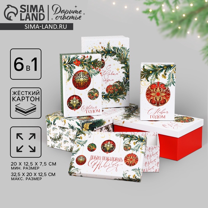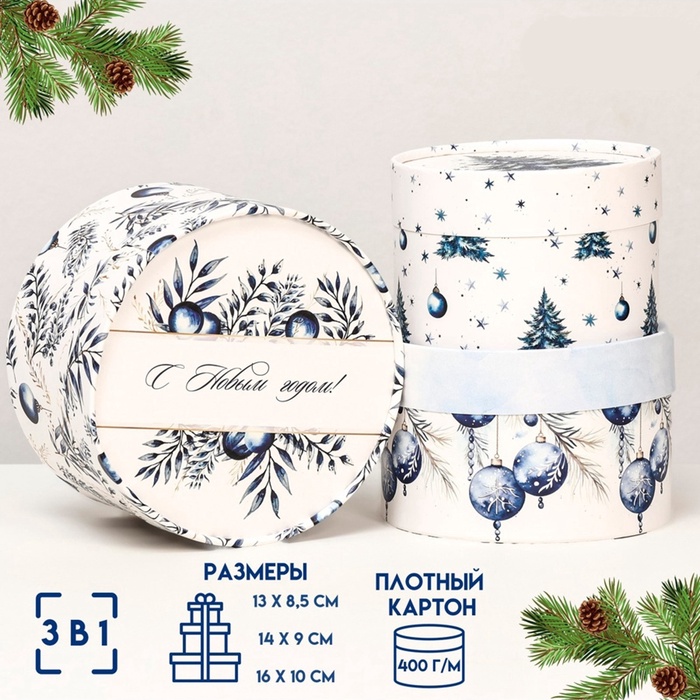 Набор подарочных новогодних коробок 3 в 1 "Шарики", 16 х 10, 14 х 9, 13 х 8,5 см. — Характеристики