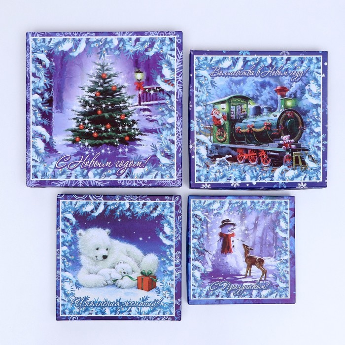 Набор подарочных новогодних коробок 4 в 1 «Новогодний секрет», 19×19×7.5 см — Характеристики