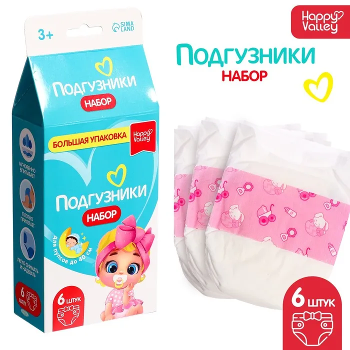Набор «Подгузники» для кукол, 6 штук — Характеристики