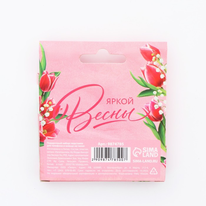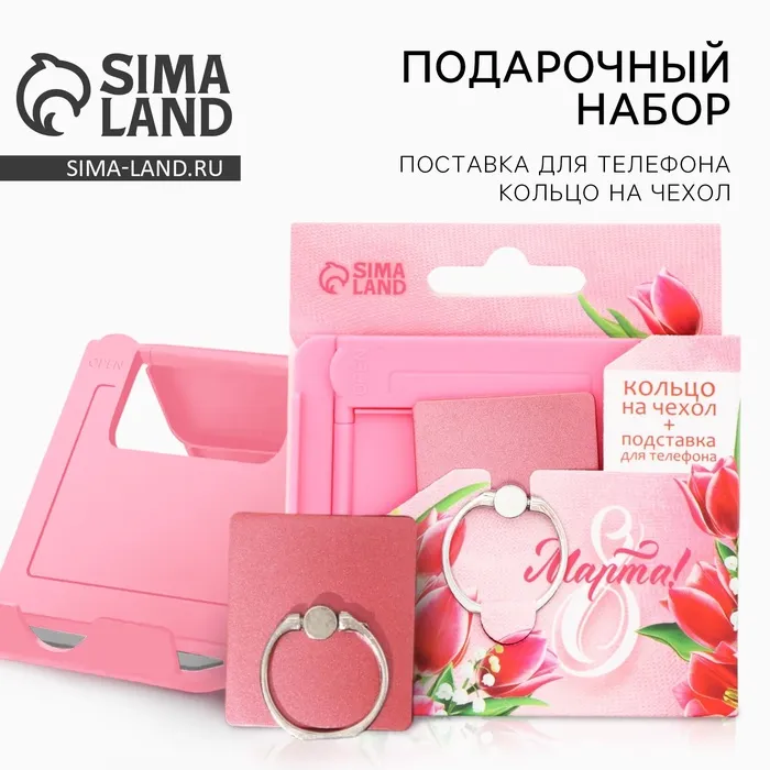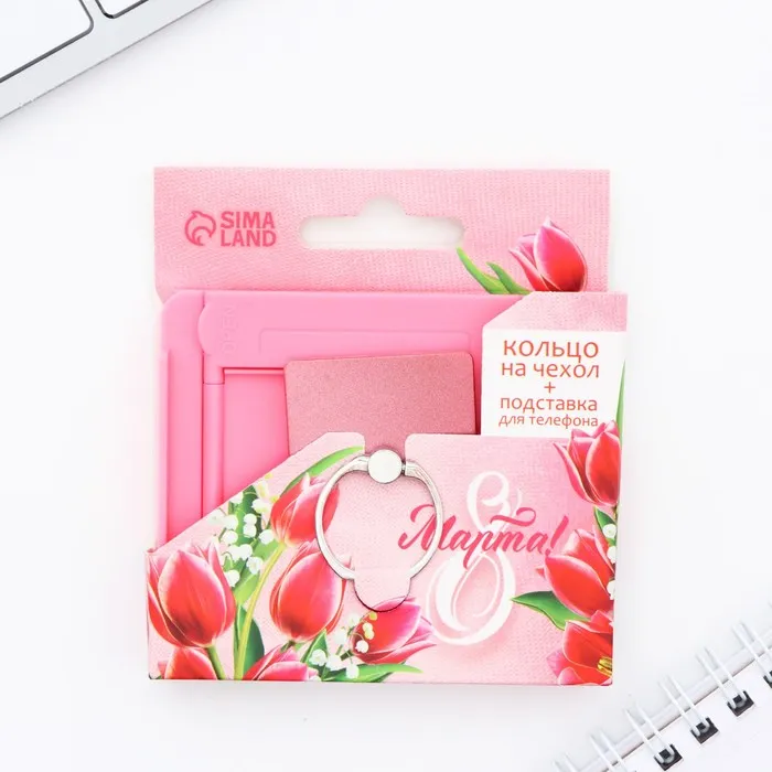 Набор: подставка для телефона и кольцо на чехол «8 Марта!» — Характеристики