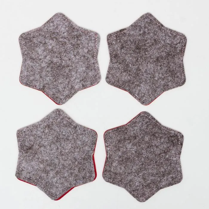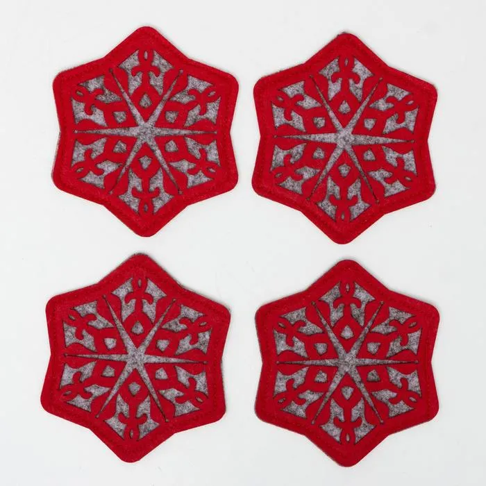 Набор подставок для бокала «Снежинка», 4 штуки, красный 8.5 см, 100; п/э, фетр
