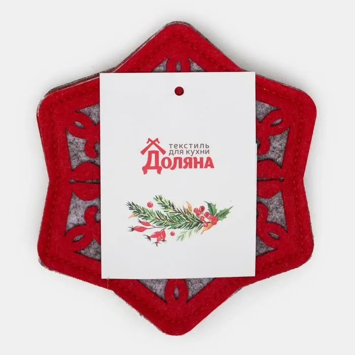 Набор подставок для бокала «Снежинка», 4 штуки, красный 8.5 см, 100; п/э, фетр — Характеристики