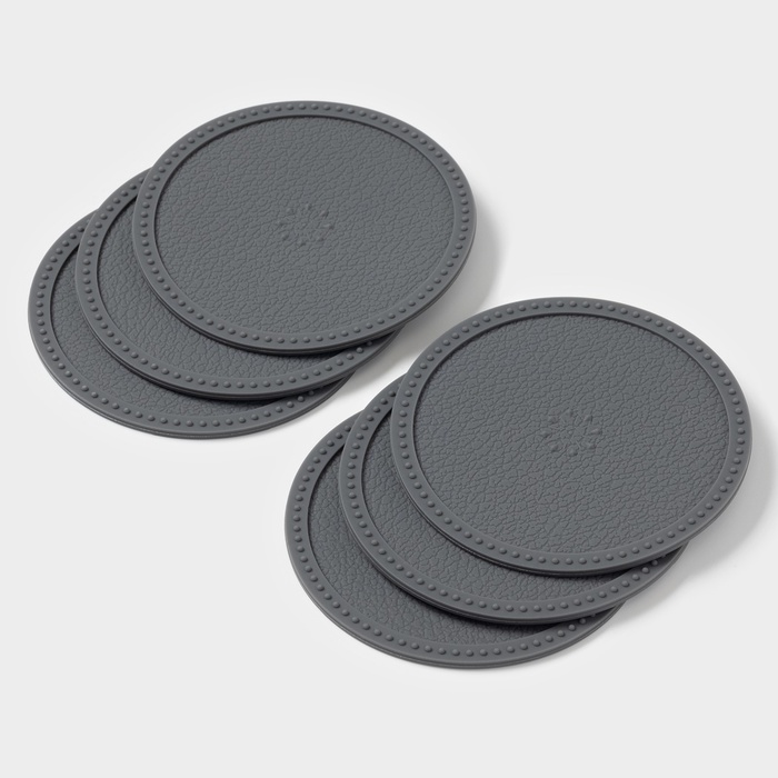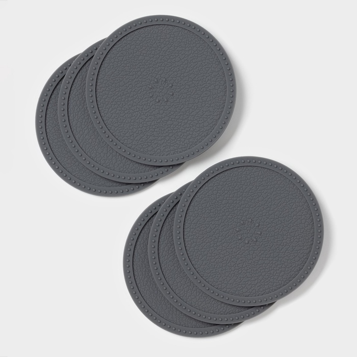 Набор подставок под горячее, под кружку, силикон, 6 шт., d=8 см, серый — Характеристики