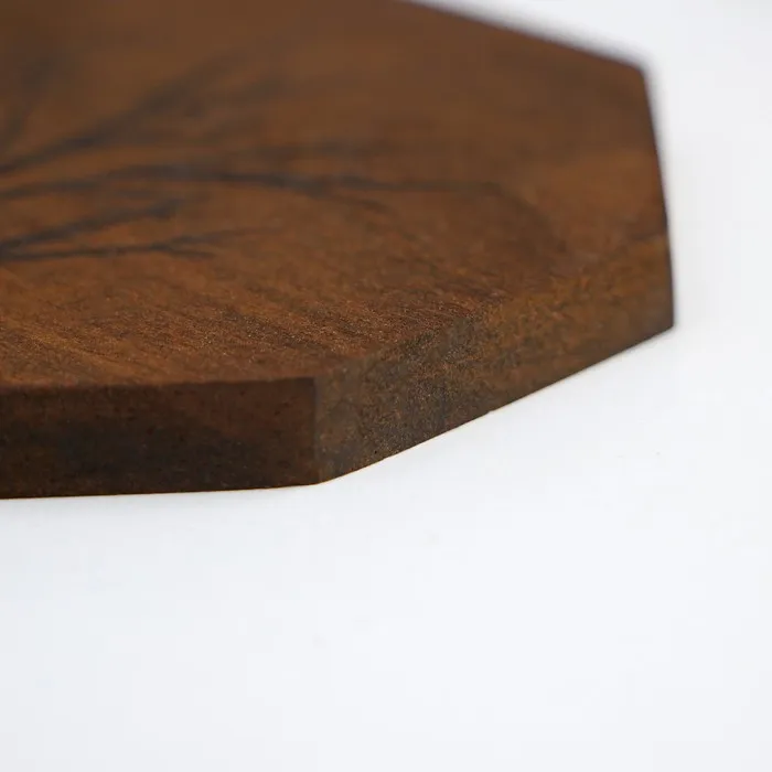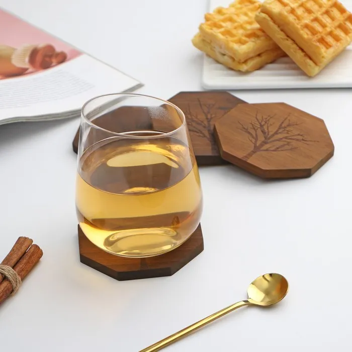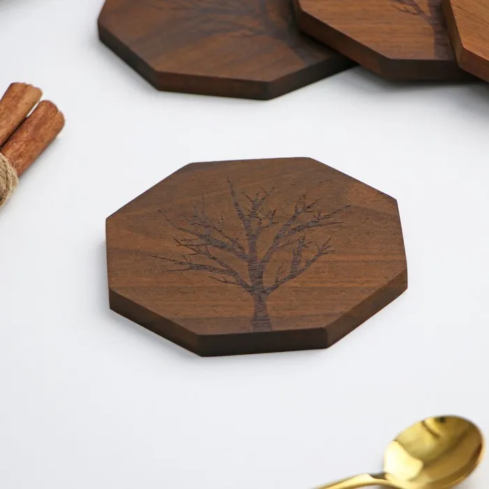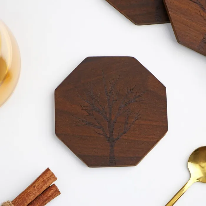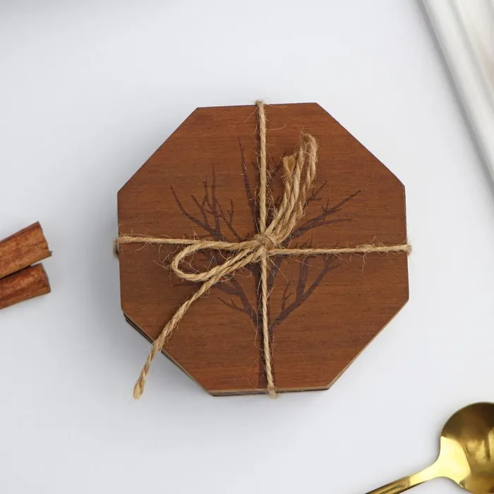 - Стильный дизайн: восьмиугольная форма подставок в сочетании с красивым рисунком древесины сделает их ярким акцентом вашего стола.