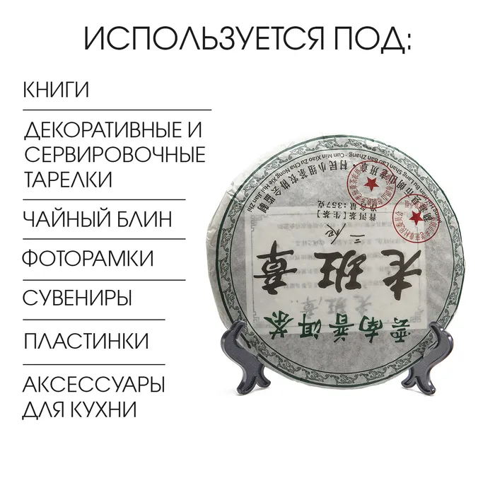 Набор подставок для декоративной тарелки - идеальное решение для стильного и функционального хранения ваших любимых предметов. Эти элегантные подставки станут прекрасным дополнением к вашему интерьеру и помогут организовать пространство на кухне, в гостиной или спальне. В набор входят 5 подставок высотой 15 см, выполненных из прозрачного пластика. Складная подставка, предназначенная для хранения прессованного Пуэра в виде блина. Чайный блин на подставке будет надежно удерживаться в вертикальном положении. Такая эстетичная конструкция не только позволит правильно сохранить Пуэр, но и послужит украшением интерьера. Подставка идеально подходит для чайных блинов диаметром 19 см, а также для сувениров, тарелок и других предметов. Благодаря своей прочности, подставки надежно удерживают вашу посуду, предотвращая ее падение и повреждение. Раздвижные устойчивые ножки длиной 5,5 см позволяют регулировать наклон устанавливаемого предмета. Черный цвет подставки, позволяет гармонично вписываться в любой интерьер, не отвлекая внимания от основного предмета. Это делает их идеальным подарком для друзей и близких, ценящих стиль и уют в доме. Набор подставок - это функциональность, стиль и практичность в одном флаконе. Приобретая этот товар, вы получаете возможность украсить свой дом и сделать его более комфортным и уютным.