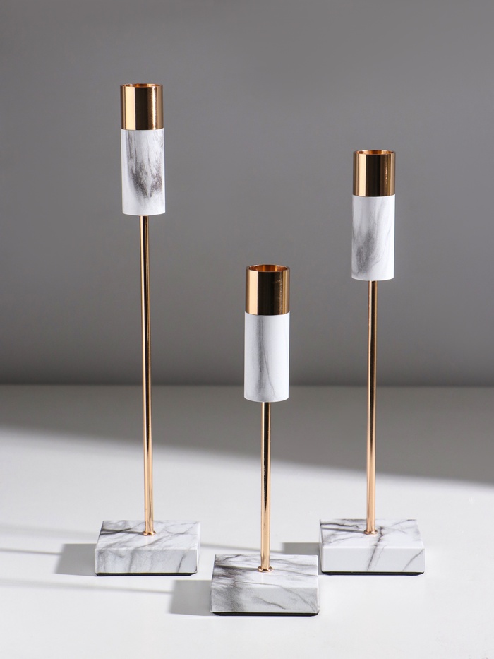 Набор подсвечников на 1 свечу «Бьянка», металл, d=2 см, 3 шт., под мрамор — Характеристики