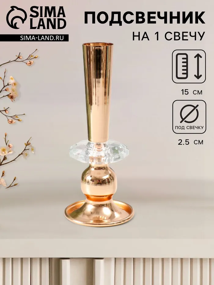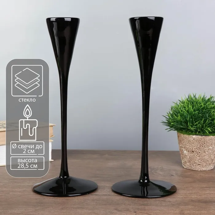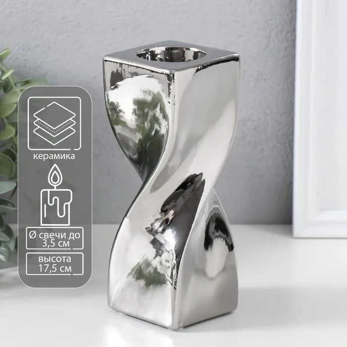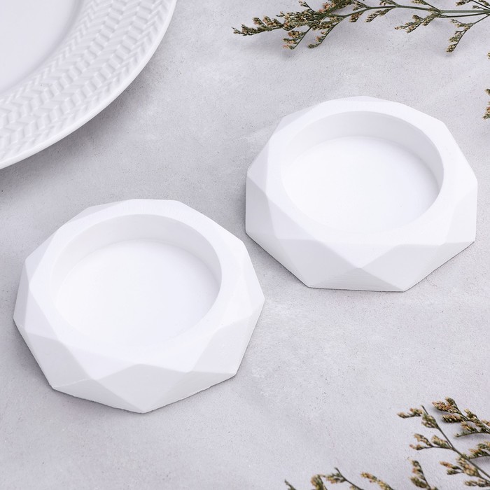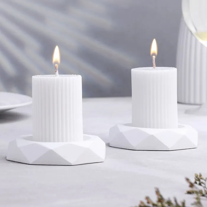 Набор подсвечников на 1 свечу «Грани», 2 шт., гипс, 2.3×10 см, перламутр — Характеристики